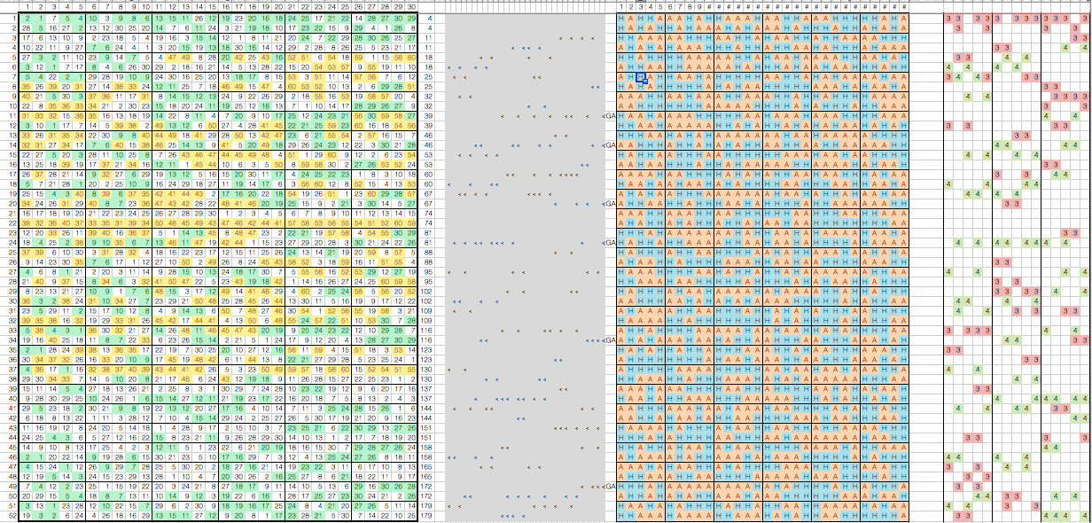 When I was doing the other 60-team schedule this is what the meat of my spreadsheet looked like. I do one series per cell rather than one game per cell so I can see the whole thing at once, then transfer it later.