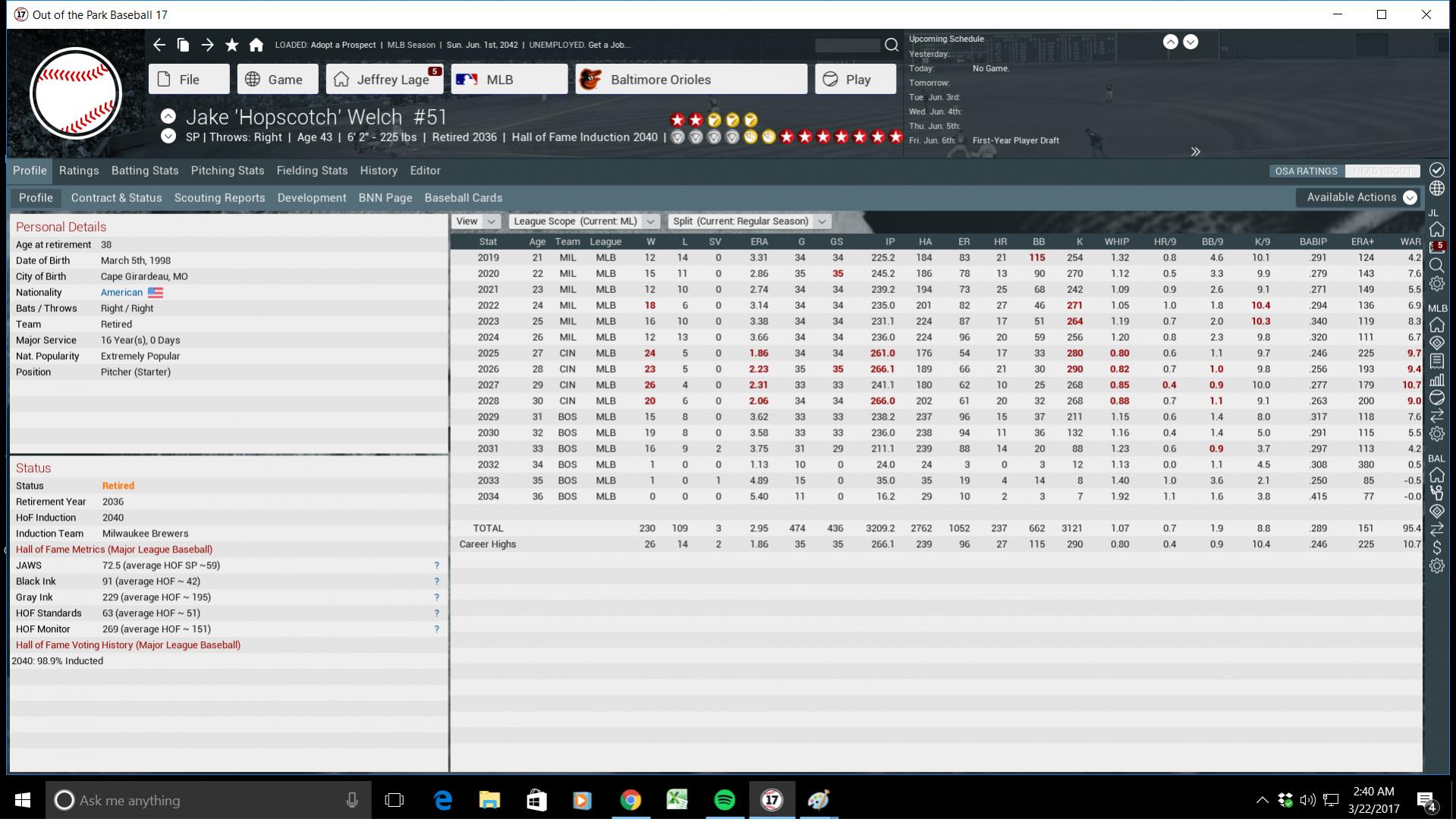 Jake Welch finishes 20th all time in pitcher WAR with 95.38, between Pud Galvin and Pedro Martinez (Juilo Urias finishes 18th).