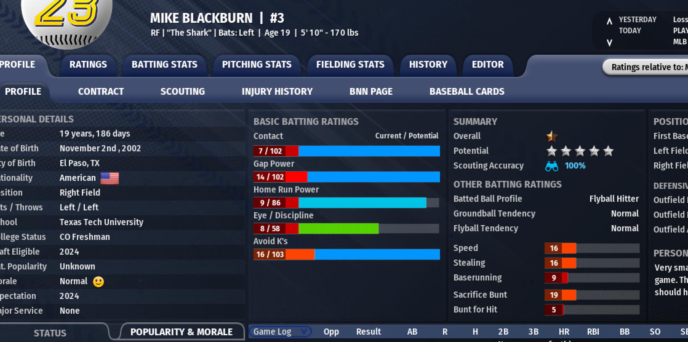 Of course this is only one example, but in my testing this appears to be happening across the board. It makes it much harder to determine which pitcher is going to develop and which one isn't. I see it especially when international amateurs are announced. I have yet to see any 3-5 star pitching prospects on July 1, but there are a ton of 5 star hitters.