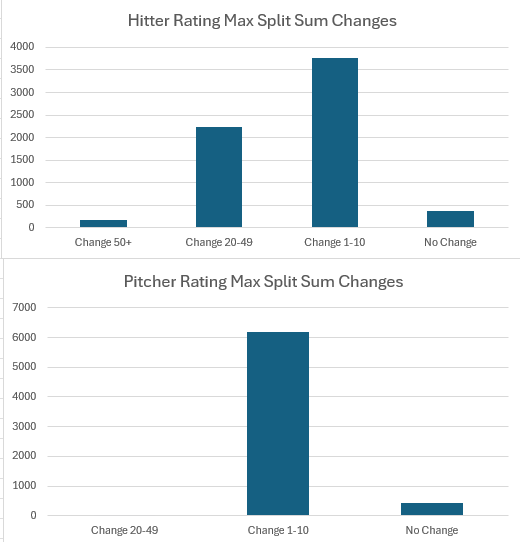 Tested conversion on the beta patch. Pitchers look good but there is still a pretty significant change on 2.4% of hitters and a whopping 35% of hitters are experiencing significant change to one split or another.