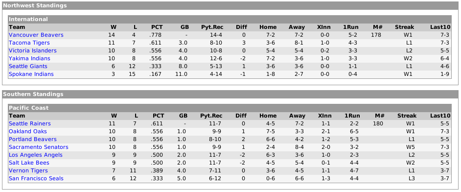 The Pacific Coast League has been around in some format since the early 1900's, Though it tried to put together a good product, And was mostly recieved as a good league - It was just never seen as "Major League Material".. It came close but nevre quite got there.. This is the story of this league trying to flex it's muscles The year is 1920, Baseball on the West Coast has gone through a few incarnations with several different leagues coming and going, The PCL, The Northwestern League, The Inter-Mountain League, The Oregon League, The California League and so on most of these leagues by now have either merged or failed. Currently both the Pacific Coast League as well as the Pacific Coast International League are operating on the West Coast. The Pacific Coast League is the big dog of the two, Still trying to prove it belongs in the Major Leagues has managed over the years to have some good players on their rosters only to have them sold to the Majors after a season or so. This became frustrating to the league as they felt this talent was nurtured by them and should be able to help them elevate to the next level rather than raid all the talent and keep them a second tier league. The PCIL on the other hand has also been around a few years with various teams in and out of the league. Though much less recognized and much less talent, They felt they too should get more notarity as a league.. This all changed in 1920 The presidents of both leagues got together late in the 1919 season to discuss pooling their collective resources and as they said "really making a go of it" Between the two of them they covered most of the West Coast whose population was growing (5.5 millon per the 1920 census) this was still a small number compared to say New York who was over 10 million but it was more than a lot of the cities in the East. With this and the fact that their was no other professional baseball leagues anywhere in the Mountain West or Coast, They figured they had a great market to play to and with "fewer" teams and leagues, They could actually make some real money. And that was the secret, If they could make money, They may be able to keep and possibly lure good talent into the league thereby forcing MLB to take a serious look at them. By the fall of 1919 both Presidents and league owners had come up with a plan and it had all been approved and was to be en-acted for the 1920 Season - The plan called for there to be interleague play between these teams thereby creating a market for the lesser known PCIL as they would benefit from the better known PCL and for the PCL this would allow them to continue to expand their following into other areas along the coast. This plan was formally submitted to Major League Baseball as a hope that it would get a interested response, But the hopes of this inital plan were dashed as the President's of both the National League and American League as well as Mountain Landis replied to the leagues "quest" "We feel that this is a feeble attempt to not only extort money from our highly profitable leagues but also a slap in the face to the game of baseball, Your so called leagues have no business playing with our league, You do not have enough talent to be able to compete on same footing. We do not see the sense in playing baseball in the west as here in the east, This is where the fans are and the money is made.. We will continue to purchase your talent as we see fit, And will do so because we can offer more monetary compensation. So while we applaud your attempt at "joining us" we find you have succeeded in a very humourous letter. So we must at this time deny your request and wish you the best in your endevor" This single letter solidified the path the West Coast Baseball League was to take. With several well known players on the books, Sam Crawford, Tom Hughes (though older) the league felt they needed to really pick up big names to help draw in a base and fond the castoffs that MLB no longer needed. So the league formed in December 1919 - They understood (and had for some years) that one of the best ways to keep players is to pay them a little more so they did not have to try and find off-season jobs so the league who had always played close to 200 games (also due to the ability to have longer seasons due to weather) set up a 198 game season in which each league would play themselves as well as each other - At the end of the season the Division champions would meet in the WBL World Series.. So the groundwork was set.... In early January just prior to the start of the season, A windfall came to the League which would change the landscape of MLB.. Mountain Landis had banned for life from baseball the "Chicago 8" which included Joe Jackson, Happy Felsch, Buck Weaver, Ed Ciccotte and the rest as well as a few other players such as Hal Chase, Joe Geden, Eugene Paulette, Benny Kauff, Lee Magee, Heinie Zimmerman, Joe Harris, Ray Fisher and Dickie Kerr.. These players all out of baseball wanted a second chance to continue their playing careers, And since Landis made it clear he had no concern in how the West Coast wanted to handle their affairs - They jumped on the opportunity. Knowing that this may further alienate them from the Major Leagues and possibly draw the wrath of Landis, They decided to take the chance and allow these players to be signed to help the talent level and draw. And since these players were banned from the Majors, They could not be bought and taken away without a formal re-instatement. Also looking to join the league were some of the players who had just resigned from the Majors, They wanted to see if they could draw just a few more paychecks in a nicer climate. Joe Benz, Red Ames, Gene Packard, Willie Mitchell, Terry Turner, Sherry Magee and a few others. This was exactly the break the league was hoping for.. These names would surely bring credibility and a draw to the league. These players all got snapped up by teams in the league - This is the story