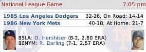 For the record, I would have predicted the 1986 Mets to win it all. I'm not just saying that because I'm a Mets fan either. That team was ridiculous. The scary part was that they could have won even more games but they weren't the most (ahem) disciplined team to put in carefully. Good to see my boy Bobby Ojeda (88) plowing forward. That 1988 team was a real heartbreaker for Mets fans. Was that the year Ojeda cut off the tip of his finger trimming his bushes? Question: I noticed that there's at least three Keith Hernandez's in the sim. What player is the most represented? |