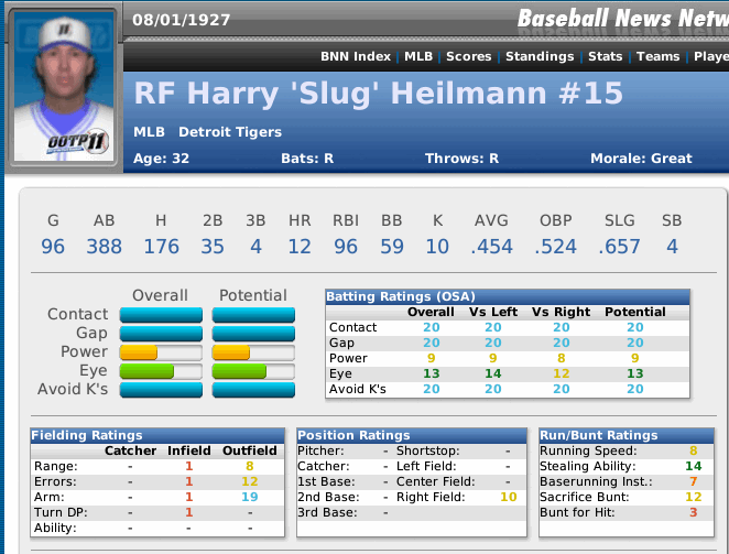 I'm simming the 1927 season and Harry Heilmann wound up hitting .526 by June 1st. I know that Harry won multiple batting titles, and I know he hit .403 in 1923, and .398 in 1927, and .394 in 1921, but .526 on June 1st???!!!! Really? Really?