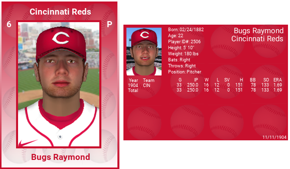 DRAFT 1. Washington Senators - Addie Joss/SP (Woodland, WI) 2. New York Giants - Charlie Smith/SP (Norris, TN) 3. Cincinnati Reds - Otto Hess/SP (SWITZERLAND) 4. Philadelphia Athletics - George Mullin/SP (Toledo, OH) ** featured 5. Cleveland Bronchos - Fred Glade/SP (Midville, GA) 6. Boston Beaneaters - Andy Coakley/SP (Providence, RI) 7. St Louis Cardinals - Chappie McFarland/SP (White Hall, IL) 8. St Louis Browns - Gus Dorner/SP (Ellington, CT) 9. Chicago White Sox - Carl Lundgren/SP (Marengo, IL) 10. Chicago Orphans - Bob Rhoads/SP (Wooster, OH) 11. Brooklyn Superbas - Bob Dresser/SP (Newton, MA) 12. Detroit Tigers - Johnny Evers/2B (Troy, NY) 13. Boston Americans - Joe Tinker/SS (Muscotah, KS) 14. Philadelphia Phillies - Bob Ewing/SP (New Hampshire, OH) 15. Pittsburgh Pirates - Patsy Dougherty/LF (Long Beach, CA) 16. Baltimore Orioles - Heinie Wagner/SS (New York, NY) KEY TRADES Philadelphia Athletics trade SP Bill Bernhard New York Giants trade C Jack Warner St Louis Cardinals trade 1B Dan McGann St Louis Browns trade 1B Tom Leahey St Louis Browns trade C Pop Shriver New York Giants trade 1B John Onze Washington Senators trade 2B John Farrell Chicago Orphans trade 2B Jim Delahanty Philadelphia Athletics trade 3B Lave Cross Detroit Tigers trade 2B Spurs McAllister Washington Senators trade C Boileryard Clarke Detroit Tigers trade 3B Doc Casey Cincinnati Reds trade RHP Whitey Guese Chicago Orphans trade 2B Cupid Childs Washington Senators trade SP Dale Gear New York Giants trade RF Danny Murphy HALL OF FAME Eight players got voted in as they were based strictly on their real life production prior to 1901. SP - Tim Keefe (New York Giants from Meno, OK) 325 career wins 2474 strikeouts SP - Pud Galvin (Brooklyn Superbas from St Louis, MO) 352 career wins 2.81 ERA SP - John Clarkson (Boston Beaneaters from Meno, OK) 328 career wins 2.81 ERA SP - Mickey Welch (New York Giants from Fort Wayne, IN) 307 career wins 2.71 ERA SP - John Ward (St Louis Cardinals from Dyersdale, TX) 2.10 career ERA SP - Bobby Mathews (New York Giants from Murphy, TX) 297 career wins 2.48 ERA SP - Charlie Radbourn (St Louis Cardinals from Rochester, NY) 282 career wins 2.62 ERA SP - Tony Mullane (Cincinnati Reds from IRELAND) 248 career wins 3.13 ERA |