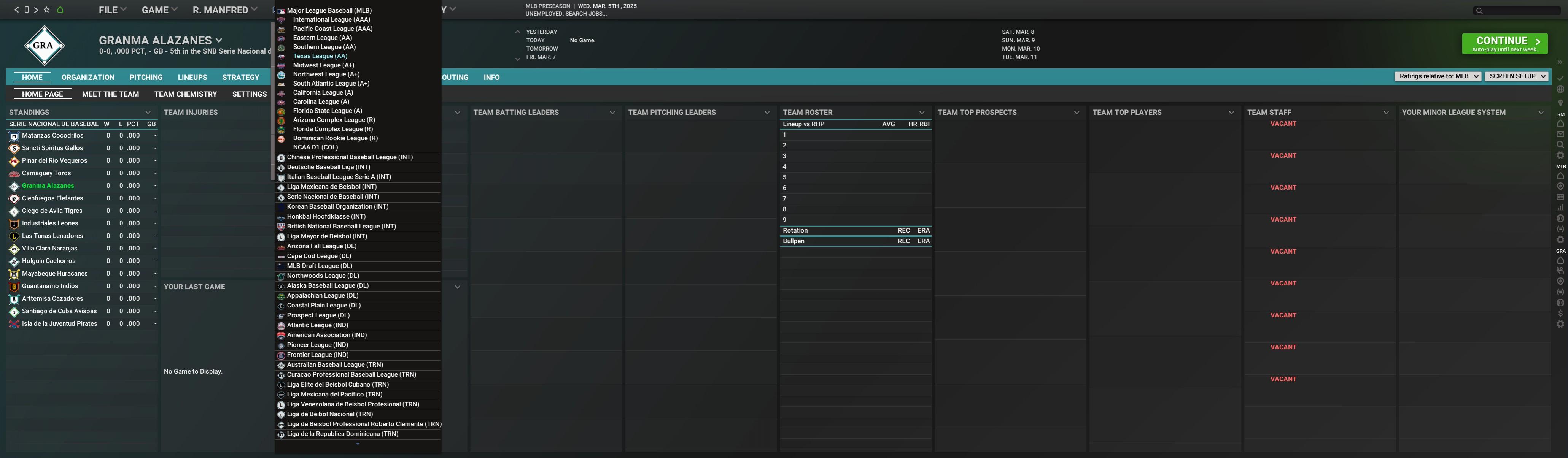 I'm hoping to get a few different people involved so that I am not asking any one person to do a lot of work on graphics I have 2 winter leagues that feed into the Carribean Series that I need 3 individual teams from other Carribean Series leagues that I have not found but have the rest of those leagues' teams then I have one other winter league 2 college summer leagues 4 extra foreign leagues and one US Indy league The mod would be released with fictional players first and then as I go through and update rosters for the foreign leagues and the feeders, it would become fully real players sometime over the winter months Pics added to show the universe I want to finish off Last edited by BestbatBoy; 06-09-2025 at 04:16 AM. |