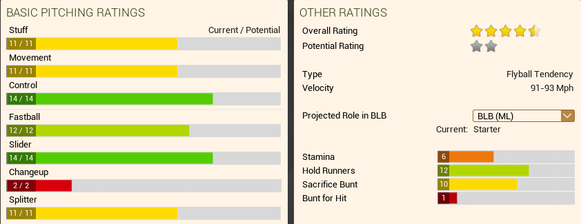 Example is this guy - I verified in editor all his main stats and his pitches are at his full potential levels, so why is his rating appearing like this?