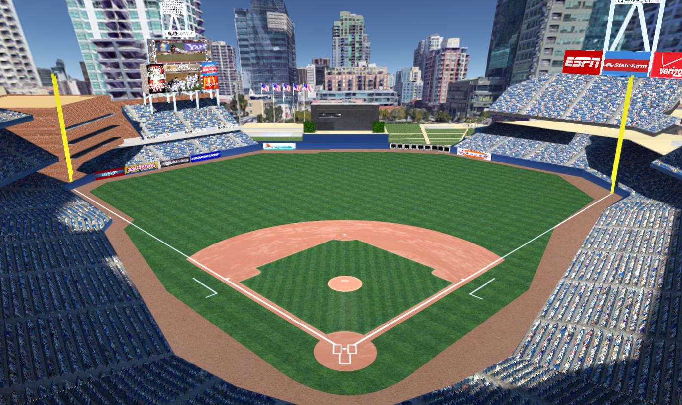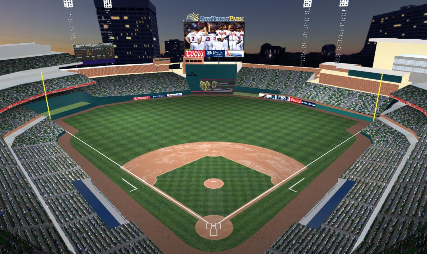 I have updated the parks that come with OOTP 19 with new signage. I wanted to add pictures to the big TV screens also like I did for 18 but it was not possible for most parks. The formatting of the texture files that contain the TV screens is different than in 18 and I am not able to do it like I did before. A few of the parks have the screens in a different texture file and they are easy to change but I can't do different ones for day and night. The pictures of Petco and Suntrust are that way. The picture of Progressives shows the problems I have with the others. As you can see, the big screen is segmented and has darkness to it even for day time. It is my fondest hope that the developers will come with a good method to fill the screens for all parks. If/when that happens I will up date those that need it. I do appreciate the changes that allow parks to have signs for that park and not one set that feeds all parks. I would like to see each park have a separate ad pfx for every sign location in order to do away with unwanted duplicates and so that all signs can be made to fit correctly into each space.