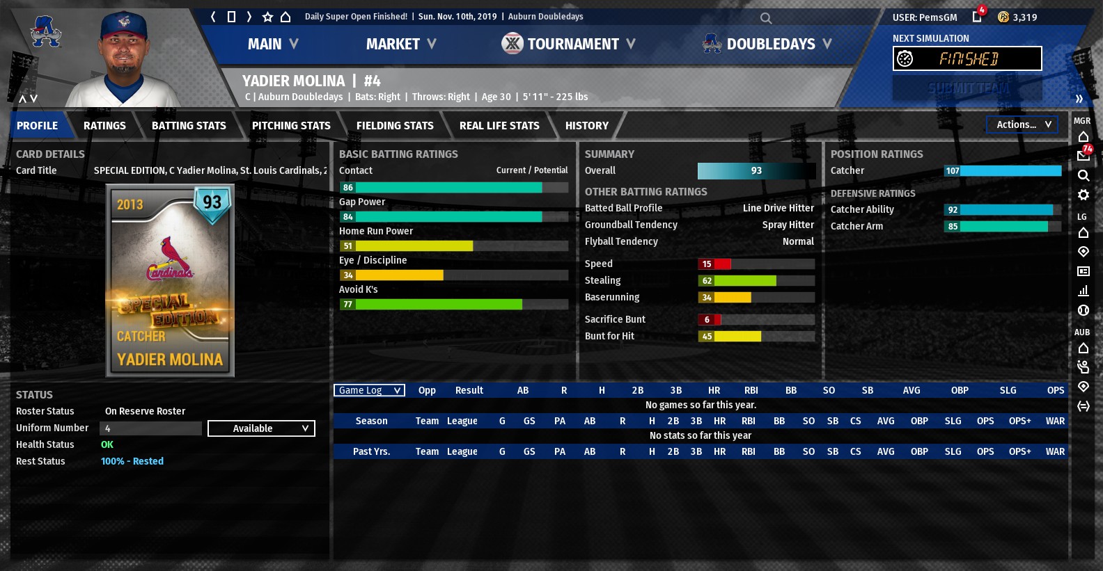 I might have to re-think where to put Josh Gibson (1b or DH). Molina's contact, spray hitting and defense makes a strong case to start!