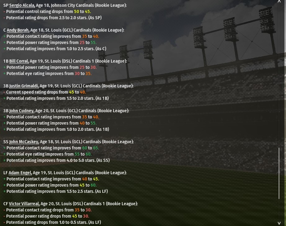 In Tatis, the Walkers land a 26-year-old who batted .265 with 29 homers and 71 RBIs in 156 games in his first full season with the Guitar Heroes. He got on base at a .323 clip and slugged at .455. He also is a Gold Glove caliber defender at third. But the Walkers surrendered a nice haul The 26-year-old Kohlhepp was the primary third baseman for the World Series champion Walkers, batting .261 with 17 homers and 63 RBIs in 152 games. He also is a plus defender at his position. Their top prospect, the 20-year-old Bustillos also is bound for Cleveland. Still progressing his way through the minors, he spent the bulk of 2025 at AA Springfield where he hit .261 with nine homers and 45 RBIs. He is ranked the No. 8 overall position player prospect in the game. The Heroes will also add 25-year-old right-handed reliever Adam Wenger. Wenger was expected to serve as a righty out of the STL bullpen in 2025 but could eventually be a closer. He got into 11 games with St. Louis in 2025, going 1-1 with a 4.15 ERA. Most of the season, he was at AAA Memphis pitching in 37 games and going 2-4 with 25 saves and a 4.59 ERA. |