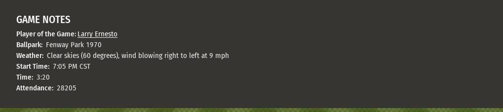 Quad City worked its way to a 7-0 lead and cruised from there in an 8-4 win over St. Louis at Fenway Park (1970). Jacob Gonzalez reached on an error by River Walkers starter Argenis Batista and later scored on a Nick Gonzalez single in the third inning to open the scoring. The Thunder would break it open with four runs in the fifth. Jacob Gonzalez again got it started when reached base after a passed ball got by catcher Jared Thomas on strike three. A wild pitch moved Gonzalez to second and again Nick Gonzalez drove him in, this time with a deep fly ball. Batista exited after his second pitch of the inning eluded Thomas, leading to an intentional walk to Randolph Thorne. He was replaced by Nick Lodolo, who saw the second pitch he threw travel 389 feet over the Green Monster in left for a three-run homer and a 5-0 lead. It was 7-0 after six innings. Nick Gonzalez collected his third RBI of the game with a single which scored Andrew Bethea. Chase Davis also singled, his hit plating Jacob Gonzalez who scored his third run of the game. St. Louis did bust loose for four runs in the top of the seventh. Jared Thomas drove in two of the runs with a double. But it would not score again. Q-C's Miguel Gomez scored the game' s final run with a homer off Derek Gordon in the seventh. Thunder starting pitcher Nick Wood handled the first 6.2 innings, allowing three runs on seven hits. He stuck out six and walked one. Garrett Williams recorded the final out of the seventh. Rafael Antonio Gomez worked a scoreless eighth. Thad Ward started the ninth for Q-C, but issued two walks. That brought John Daley to finish it up and he got out of it without allowing a run, earning himself a save. |