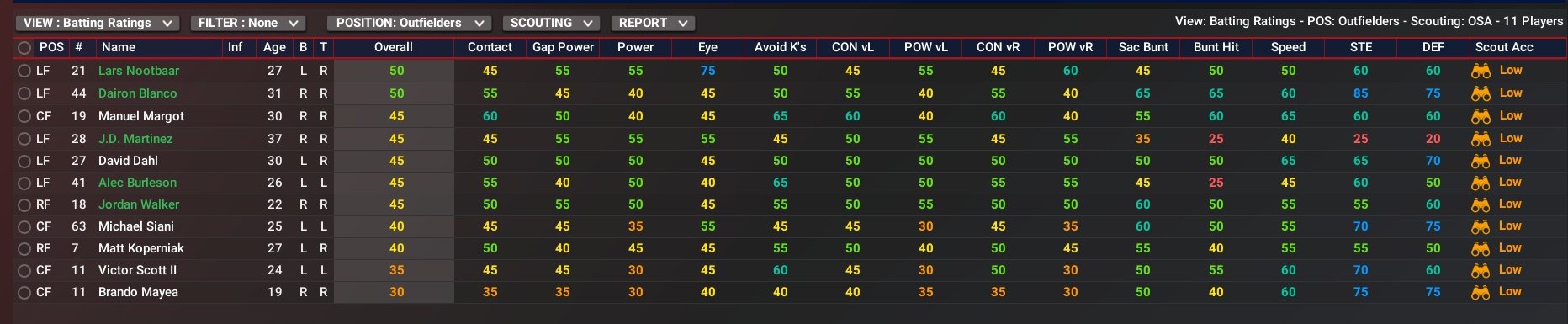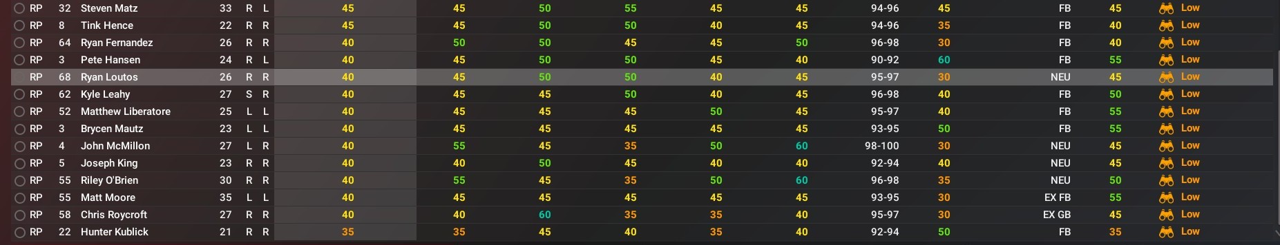 That run had ended with an ugly 71-91 campaign in 2023 -- the team's worst finish since 1995 -- and an 83-79 finish in 2024. Yes, the Cards' let former MVP first baseman Paul Goldschmidt walk in free agency. Free-agent lefty reliever Andrew Kitteridge also was allowed to exit. But other than that, the whole dang gang was allowed to return for 2025. That included former All-Star third baseman Nolan Arenado, who seemingly had taken a big step back in 2024. Along with over-paid starting pitchers Miles Mikolas and Steven Matz. (Although, Matz likely will primarily serve as a reliever this season). The return of those three players, really gum up the works in terms of a reset as young players looking to get their shot will be stuck either on the bench or in the minors. So, what I am going to do is start the season at the end of the off-season. The goal will be to get rid of Arenado before the start of the season and either one or both of Mikolas and Matz. Any money I recoup through trades I can use to add other players. But I cannot go over the $127,509,000 payroll ceiling set by the DeWitt family. I also may revamp the front office and coaching staff, since I don't have much faith in what they currently have in place. Last edited by rink23; 03-28-2025 at 02:03 AM. |