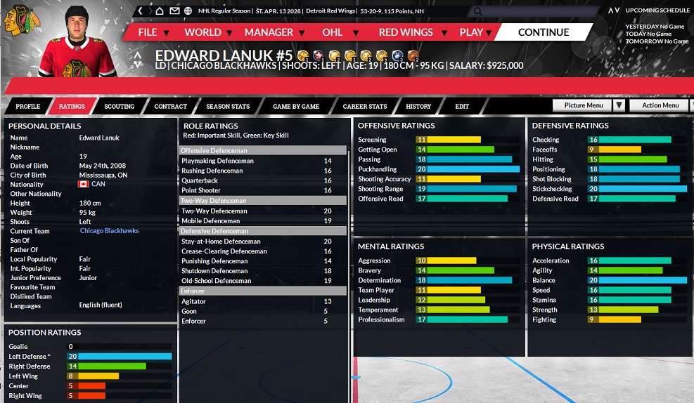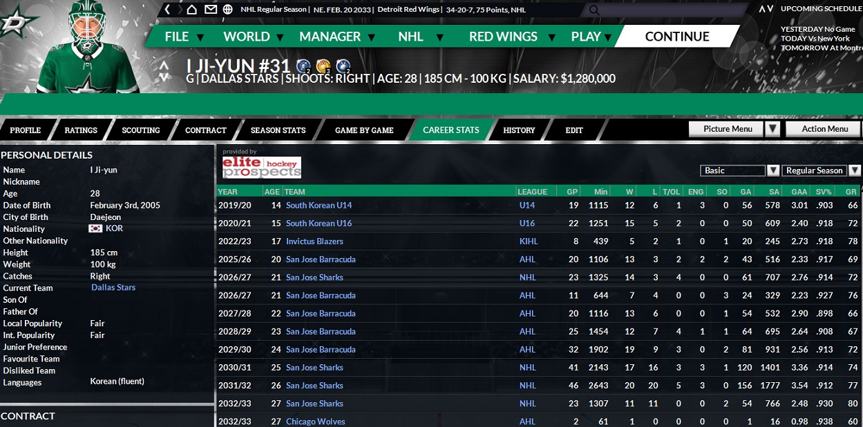 Started the new game with Detroit Red Wings. Want to sim as much seasons as it will be possible. In EHM did abou 250 seasons with one team, i hope this game will be not again it.