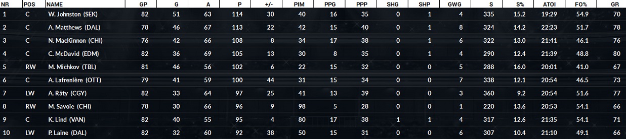 What is amazing, average attendance is slowly declining (see picture). From 17 080 to 15 338. Lets see, how it will continue. Nathan MacKinnon and Connor McDavid are clearly the best players to this days. Sometimes Auston Matthews. But now, let the picture spoken. |