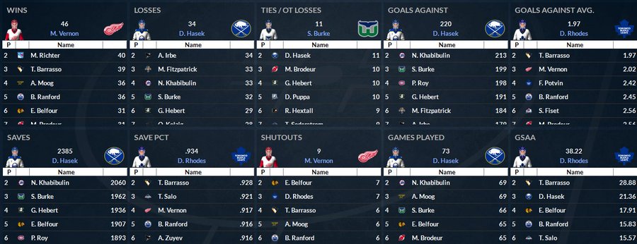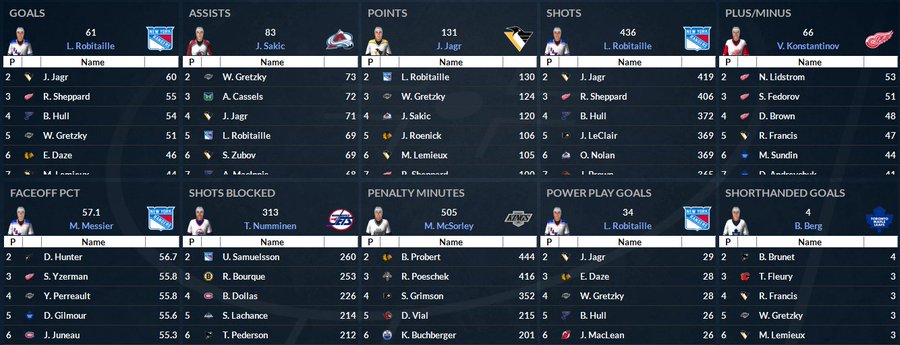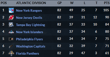 MONTREAL GAZETTE ![]() The following is a Season Review of the 1995-96 NHL Season April 15th 1996 The 1996 NHL Season has come to an end and it's time to go ever everything from Standings and Stats to Award Nominees and everything else. NHL Standings Atlantic Division New York Rangers Team MVP - Mark Messier 36 GP 17 G 36 A 53 PTS Most Surprising - Luc Robitaille 82 GP 61 G 69 A 130 PTS Most Disappointing - Adam Graves 71 GP 18 G 29 A 47 PTS Season Recap After a disappointing season and second round exit following their Cup win, the Rangers are locked and loaded to win their second Stanley Cup win in three years. They had big additions this offseason with Robitaille, Ferraro, Larouche and Samuelsson and all of them have had great seasons this year. The biggest obviously is Luc Robitaille who was two goals shy of his goals record as he scored 61 and a total of 130 points, which is a career high. Nobody could have seen such a season coming but he just seemed to click with Verbeek who tied his career high of 89 points. Ray Ferraro was centering Luc and Pat and he was key to keeping that line going in the absence of Messier when he missed three months with an injury. Larouche became a steal for the Rags as in just his second season he had 52 points after scoring 15 in 18 games last year with the Sens. With Messier back and the original Rangers like Leetch, Kovalev and Richter all killing it, the Rangers have a good chance of winning it all come Playoffs New Jersey Devils Team MVP - Scott Niedermayer 76 GP 10 G 51 A 61 PTS Most Surprising - Scott Niedermayer 76 GP 10 G 51 A 61 PTS Most Disappointing - Martin Brodeur 65 GP 31-23-10 W-L-T Record 2.56 GAA .906 SV% 5 SHO Season Recap The defending Stanley Cup Champions have a decent season with 39 wins and finish 4th in the Conference. It's not the best season the team could have had and the reason being is Martin Brodeur didn't have the greatest regular season with only a .906 SV%. It shouldn't be the biggest worry considering he had a worse SV% last season before he had a .927 in the playoffs. They added Oates at the deadline and he's had 13 points in 12 games on the first line so this team has the skill to repeat. Tampa Bay Lightning Team MVP - Brian Bradley 79 GP 33 G 63 A 96 PTS Most Surprising - Brian Bellows 82 GP 35 G 42 A 77 PTS Most Disappointing - Rob Zamuner 78 GP 9 G 18 A 27 PTS Season Recap The Lightning qualify for the playoffs after finishing 4th last in the NHL last season. The big reason for the turnaround? The duo of Brian Bradley and Brian Bellows. The Double B's both had huge seasons and carried this team to the playoffs. Captain Bradley breaks his previous career high of 86 points with 96 and has the Flames, Canucks and Leafs shaking their heads because they let this guy slip away. Meanwhile 31 year old Bellows bounces back big time after only scoring 16 points in 41 games with the Canadiens last season. GM Phil Esposito has too be happy with the big improvement over last season and only time will tell if they can make any noise come Playoffs. New York Islanders Team MVP - Zigmund Palffy 80 GP 35 G 54 A 89 PTS Most Surprising - Mathieu Schneider 70 GP 25 G 49 A 74 PTS Most Disappointing - Wendel Clark 75 GP 16 G 29 A 45 PTS Season Recap The New York Islanders are another team that have a big turnaround as they go from the second worst team last year to 6th in the Eastern Conference this year. The big reason for the Islanders rise in the standings is due to the emergence of Palffy, Schneider, Bertuzzi and addition of 20 year old Jason Allison. The Islanders are looking like a future contender and have a good mix of vets and young guys already. Captain Wendel Clark and Assistant Kirk Muller lead this young team into the playoffs with the ability to upset a good team. Watch for this team down the road to become a real contender if they add a few more pieces. Philadelphia Flyers Team MVP - John LeClair 74 GP 34 G 48 A 82 PTS Most Surprising - Shjon Podein 57 GP 14 G 17 A 31 PTS Most Disappointing - Eric Lindros 64 GP 22 G 41 A 63 PTS Season Recap The most disappointing team of the season was the Philadelphia Flyers who squeak into the playoffs as a 7th seed after finishing 5th in the entire NHL last season. The biggest letdown was reigning Hart Trophy winner Eric Lindros, who has still yet to play more then 65 games in a season, finishing with only 63 points. He had more points in only 46 games last season then he did this year in 64. Injury problems are a serious issue for the former 1st overall pick and will likely be a problem for the rest of his career. The Legion of Doom when Lindros was out wasn't as dominant as last season but still good enough to get this team to the playoffs. The Flyers will be heading into the Playoffs with a full roster so if they can rewind back to last season they could be one of the most dangerous low seeds a team could face Washington Capitals Team MVP - Peter Bondra 77 GP 38 G 39 A 77 PTS Most Surprising - Richard Zemlicka 67 GP 13 G 22 A 35 PTS Most Disappointing - Calle Johansson 82 GP 7 G 31 A 38 PTS Season Recap A team that seems to be in flux on what type of team they want to be, the Washington Capitals miss the playoffs by 1 point. This team has a lot of problems they will have to answer come the offseason where General Manager David Poile will be under the magnifying glass to make the right moves. They have the players to work with but not a plan on what they want to do. An example being trading Jason Allison for 580 game veteran Derek King. Allison had 41 points in 68 games and is 9 years younger then King. The goalie situation will also need to be solved as they have two top-end goalies in Jim Carey and Olaf Kolzig. "Olie the Goalie" got the majority of starts but both played well and Carey is 5 years his senior. Too many questions for this team to have success right now Florida Panthers Team MVP - Rob Niedermayer 82 GP 25 G 21 A 46 PTS Most Surprising - Scott Mellanby 49 GP 20 G 25 A 45