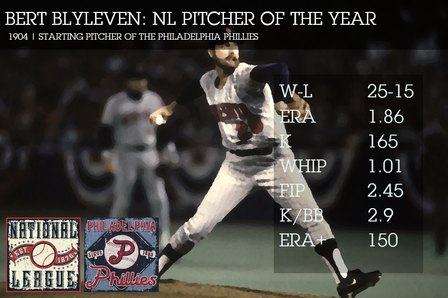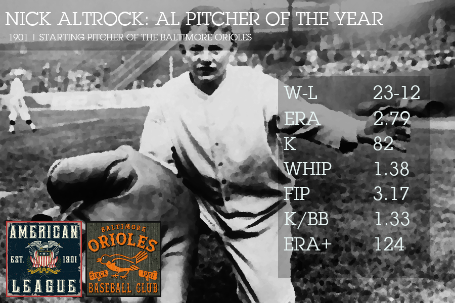 ![]() The Boston Americans might have occupied the bottom of the American League table but just imagine how dire they would have been had it not been for the efforts of David Peralta? Power was the name of the game for Peralta, he lead the American League in Extra Base Hits with 27 doubles, 27 triples, and 6 home runs which granted him a .953 OPS to lead everyone the entire baseball world in pure production at the plate. Double that up with excellent plate discipline and some very solid defense out at left field and you've got your MVP. A game that was a perfect encapsulation of Peralta's season was a September 20 game against the Cleveland Blues. He went 3-4 with 2 triples and had secured his team a 4-2 lead going into the 6th but the Blues unleashed an onslaught of runs in the the 6th to ultimately take out the game 7-5. Peralta is given player of the game honours while his team takes the loss. Peralta's main competition was Baltimore 1B Wes Parker, who lead the league in batting average and Chicago White Sox CF Willie Mays. ![]() Whit Merrifield is the unanimous MVP for the National League. The 30 year old was the driving member of the World Champion Phillies side. The Second Baseman led the National League in Runs, Hits, Home Runs, Batting Average, and OPS. Whit was the catalyst of the Phillies push for the pennant starting in July as his team rose from 5th to 1st in the NL. From the 5th of July to the 28th of September he had a 64 game on-base streak going. Included in that time was a 36 game hit streak, a 20 game scoring streak, a 7 game RBI streak, and a 6 game extra-base hit streak. His main competition for the prize included fellow Phillie, RF Ben Chapman and Boston Beaneater SS Arky Vaughan. ![]() Nick Altrock was the unanimous pick for the AL Pitcher of the Year. He was an iron man, no one played more games and pitched more innings than Altrock. And he was good, he gave away few free passes, and his groundball style ensured that he got through games efficiently. His 25 induced double plays were the most in the league. He picked up 3 complete game shutouts, the most famous one being a September outing against the Cleveland Blues where his Orioles took a 4-0 win over the league leaders. Altrock was far from the perfect in the game, giving up 10 hits and 2 walks over the game but he always came through to prevent them from getting any one guy around the bases. In fact, his last act of the game was to strike out CF Jim Edmonds with the bases loaded. The runner-ups to Altrock included Jack Taylor of the Chicago White Sox and Charles Bender of the Boston Americans. ![]() The Pitcher of the Year race in the NL was a pretty tense affair between Chicago's Randy Johnson and New York Giant Pedro Martinez. 11 inches may have separated the two in height but they were much more equal in pitching prowess. Both of these pitchers excelled in the art of the strikeout. Their respective totals of 217 and 213 were well clear of any one else in the conversation (Detroit's Lefty Williams in the AL was the closest with 176). Pedro might have been the better underlying numbers. His 2.62 ERA and 2.58 FIP were better than Johnson's and while Johnson's Strikeouts came with the cost of a high walk rate, Martinez was a lot more controlled with a 1.8 BB/9 against Johnson's 2.8 BB/9. Martinez also led the league in complete game shutouts with 5. Three of those coming over a three game span in May where he did it consecutively (with a one inning relief appearance in there as well) The difference to the voters was Johnson's 23-11 win record against the 17-17 line put up by Martinez. Johnson had an uncanny ability to deliver exactly what his team needed to win. His 4.2 WPA was nearly three times that of the next pitcher. Ultimately that proved the difference. AMERICAN LEAGUE SILVER SLUGGER AWARD P Jim Whitney (Detroit Tigers) C Andy Etchebarren (Philadelphia Athletics) 1B Wes Parker (Baltimore Orioles) 2B Buddy Meyer (Cleveland Blues) 3B Pete Rose (Baltimore Orioles) SS Bobby Wallace (Washington Senators) LF David Peralta (Boston Americans) CF Willie Mays (Chicago White Sox) RF Miguel Cabrera (Milwaukee Brewers) NATIONAL LEAGUE SILVER SLUGGER AWARD P Gus Krock (Chicago Orphans) C Scott Bradley (St. Louis Cardinals) 1B Josh Bell (Brooklyn Superbas) 2B Whit Merrifield (Philadelphia Phillies) 3B Whitey Kurowski (New York Giants) SS Arky Vaughan (Boston Beaneaters) LF Paul Molitor (Pittsburgh Pirates) CF Randal Grichuk (Philadelphia Phillies) RF Ben Chapman (Philadelphia Phillies) AMERICAN LEAGUE GOLDEN GLOVE AWARD P Bruce Hurst (Washington Senators) C Roy Campanella (Detroit Tigers) 1B Mox McQuery (Milwaukee Brewers) 2B Paul DeJong (Milwaukee Brewers) 3B Willie Kamm (Milwaukee Brewers) SS Ron Hansen (Milwaukee Brewers) LF Fred Lynn (Philadelphia Athletics) CF Pop Corkhill (Philadelphia Athletics) RF Dick Williams (Chicago White Sox) NATIONAL LEAGUE GOLDEN GLOVE AWARD P Jeff Tesreau (Boston Beaneaters) C Scott Bradley (St. Louis Cardinals) 1B Mike Blowers (New York Giants) 2B Jose Altuve (Cincinnati Reds) 3B Pinky May (Boston Beaneaters) SS ?? LF Paul Molitor (Pittsburgh Pirates) CF George Davis (Boston Beaneaters) RF Ben Chapman (Philadelphia Phillies) Not sure why there wasn't a selection for Shortstop. Arky Vaughan of the Boston Beaneaters would have probably scooped up the award. AMERICAN LEAGUE TEAM MVPS Baltimore Orioles 3B Pete Rose Boston Americans LF David Peralta Chicago White Sox CF Willie Mays Cleveland Blues 2B Buddy Meyer Detroit Tigers LF Yordan Alvarez Milwaukee Brewers 3B Willie Kamm Philadelphia Athletics LF Fred Lynn Washington Senators SS Bobby Wallace NATIONAL LEAGUE TEAM MVPS Boston Beaneaters SS Arky Vaughan Brooklyn Superbas 1B Josh Bell Chicago Orphans SP Randy Johnson Cincinnati Reds 1B Adam Dunn New York Giants SP Pedro Martinez Philadelphia Phillies 2B Whit Merrifield Pittsburgh Pirates 2B Ozzie Albies St. Louis Cardinals 2B Hardy Richardson
