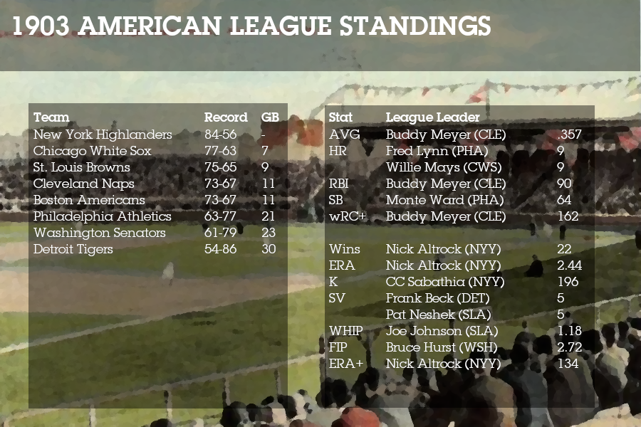 I'm using the "MLB Revisited" set by txranger for logos/uniforms/caps. So a big thanks for his fantastic work which helps so much with immersion Anyway, no further mucking around. Let's kick off with 1901. Table of Contents