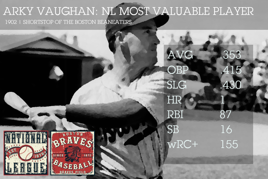 ![]() David Peralta nets himself his second MVP prize in a row. After putting up with the antics of the last place Boston Americans last season, this time round the Americans performed more like a team that boasts the talents of the MVP. Adding the talents of RF Aaron Rowand and 1B Ray Grimes helped the team rise in the standings as well as dominance of starting pitcher Charles Bender (more on him later). Peralta's .369 batting average led the American League as well as his .934 OPS that translated out to (again), an American League leading wRC+ of 175. That pop in the bat and plus defense in left field saw Peralta cruise to the MVP title. Can he make it a three-peat in 1903? Can he get the Americans over the hump to take the AL pennant? ![]() It's hard to deny the MVP candidacy of Arky Vaughan, not when he leads the National League in hits and RBIs while provide top notch defense at the Shortstop position. Vaughan's main competition came from his own teammate, CF George Davis -- who led the NL in home runs and stolen bases -- and Chicago Orphan CF Richie Ashburn who tied Vaughan for hits. One particular highlight of Vaughan came in a September 5 game against the Reds. The Reds stormed out to a 5-0 lead but the Beaneaters found their way back and it was Arky Vaughan who twice broke the tie to get his team the lead. Once with a double in the 6th and again with a single in the 8th that ultimately provided the winning run. ![]() Vaughan is only 23 and he's surrounded by other young talent on the Beaneaters including 21 year old CF George Davis, 21 year old LF Sam Crawford, and 24 year old 3B Jose Ramirez. We should be seeing a lot of good things out of this Beaneater side in the years to come. ![]() Part of the rise of the Boston Americans this season from last in 1901 to contenders this season was the complete dominance of Charles Bender. The only grey cloud in the resume for Bender was the end of the season, over his last five starts he went 0-5 and ballooned his ERA from 1.64 to 2.21. That 2.21 still led the American League but what was shaping up to be a unanimous award saw him lose a handful of first place votes to Chicago White Sox Ace Buttons Briggs. Despite the shaky finish, Bender led the American League in wins (23), ERA (2.21), Innings Pitched (317.0), WHIP (1.15), FIP- (84) and shutouts (5). In addition to his regular starts, he was often called upon to contribute reliever innings which resulted him appearing in an American League leading 48 games. ![]() Bob Gibson found himself traded from the Philadelphia Athletics to the Philadelphia Phillies over the offseason. The Athletics might have been disappointed with Gibson's performance in 1901 but a glance at the peripherals indicated that Gibson was a great pitcher in 1901, alas an unlucky one. In the new digs, it all came together. Gibson improved his FIP from 3.07 to 2.74 and with it his ERA came tumbling down from 3.49 to 2.64. He'd gone from middling to elite. A 15-20 record in 1901 turned itself around to 22-10. It was certainly too late to count the 34 year old. Gibson was a near unanimous selection but for one vote for Chicago Orphan Frank Hankinson. AMERICAN LEAGUE SILVER SLUGGER AWARD P Al Maul (St. Louis Browns) C Jim O'Rourke (Baltimore Orioles) 1B Wes Parker (Baltimore Orioles) * 2B Buddy Meyer (Cleveland Blues) * 3B Pete Rose (Baltimore Orioles) * SS George Wright (St. Louis Browns) LF David Peralta (Boston Americans) * CF Jacoby Ellsbury (Washington Senators) RF Miguel Cabrera (St. Louis Browns) * NATIONAL LEAGUE SILVER SLUGGER AWARD P Dave Foutz (Chicago Orphans) C Dale Murphy (Pittsburgh Pirates) 1B Jeff Bagwell (Brooklyn Superbas) 2B Hardy Richardson (Chicago Orphans) 3B Whitey Kurowski (New York Giants) * SS Arky Vaughan (Boston Beaneaters) * LF Charlie Keller (Philadelphia Philles) CF Richie Ashburn (Chicago Orphans) RF Carl Everett (New York Giants) AMERICAN LEAGUE GOLDEN GLOVE AWARD P Bob Ewing (Washington Senators) C Bill Killefer (Boston Americans) 1B Wes Parker (Baltimore Orioles) 2B Paul DeJong (St. Louis Browns) * 3B Willie Kamm (St. Louis Browns) * SS Ollie Beard (Chicago White Sox) LF Mike Lum (Washington Senators) CF Pop Corkhill (Philadelphia Athletics) * RF Aaron Rowand (Boston Americans) NATIONAL LEAGUE GOLDEN GLOVE AWARD P Garrett Stephenson (New York Giants) C Rick Dempsey (Cincinnati Reds) 1B Gregg Jefferies (Philadelphia Phillies) 2B Dale Sveum (St. Louis Cardinals) 3B Pinky May (Boston Beaneaters) * SS Arky Vaughan (Boston Beaneaters) LF Lenny Dykstra (Brooklyn Superbas) CF George Davis (Boston Beaneaters) * RF Jimmy Ryan (Brooklyn Superbas) AMERICAN LEAGUE TEAM MVPS Baltimore Orioles 1B Wes Parker Boston Americans LF David Peralta * Chicago White Sox SP Buttons Briggs Cleveland Bronchos LF Kirk Gibson Detroit Tigers RF Jim Whitney St. Louis Browns 2B Paul DeJong Philadelphia Athletics LF Fred Lynn Washington Senators CF Jacoby Ellsbury NATIONAL LEAGUE TEAM MVPS Boston Beaneaters SS Arky Vaughan * Brooklyn Superbas CF Harry Bay Chicago Orphans CF Richie Ashburn Cincinnati Reds 2B Jose Altuve New York Giants RF Carl Everett Philadelphia Phillies SP Bob Gibson Pittsburgh Pirates SP Jim Devlin St. Louis Cardinals SP Ed Halicki