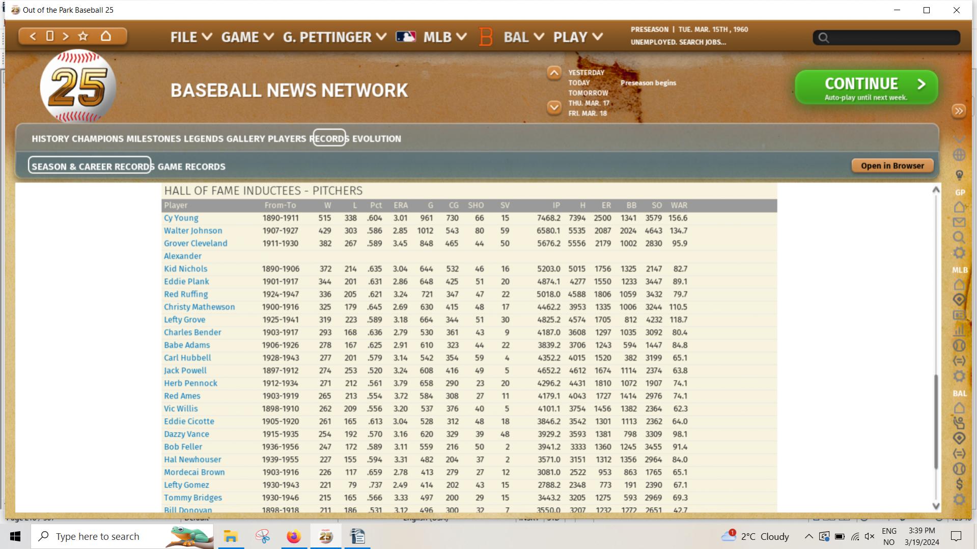 Cy Young in my test game,