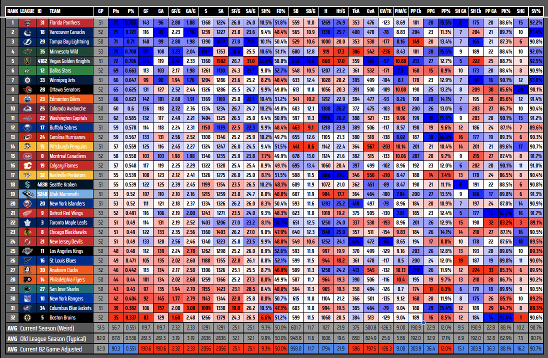 I've attached a picture which includes our league statistics with averages, along with them averaged out to an 82 game season and compared with a prior league I ran which had rather typical offensive environment.