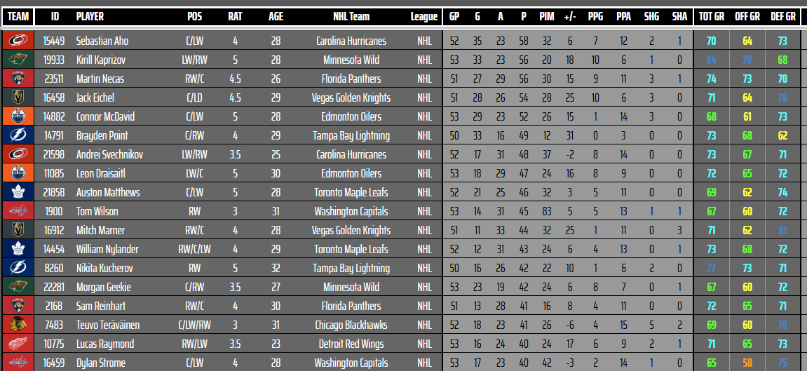 Ive also attached our highest scoring forwards leaderboard. Perhaps the low offensive game ratings and high defensive game ratings explain this too, or theyre more just symptom rather than cause.