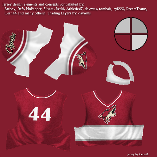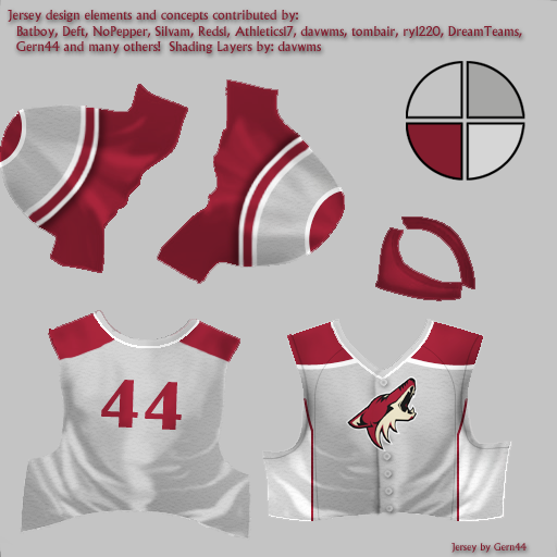 Mostly looking for a road grey Phoenix Jersey based on the coyotes colors, but If you are willing to make a home and alt jersey also I would appreciate it. I already use Gern's Phoenix Coyote jerseys along with Vimage's.