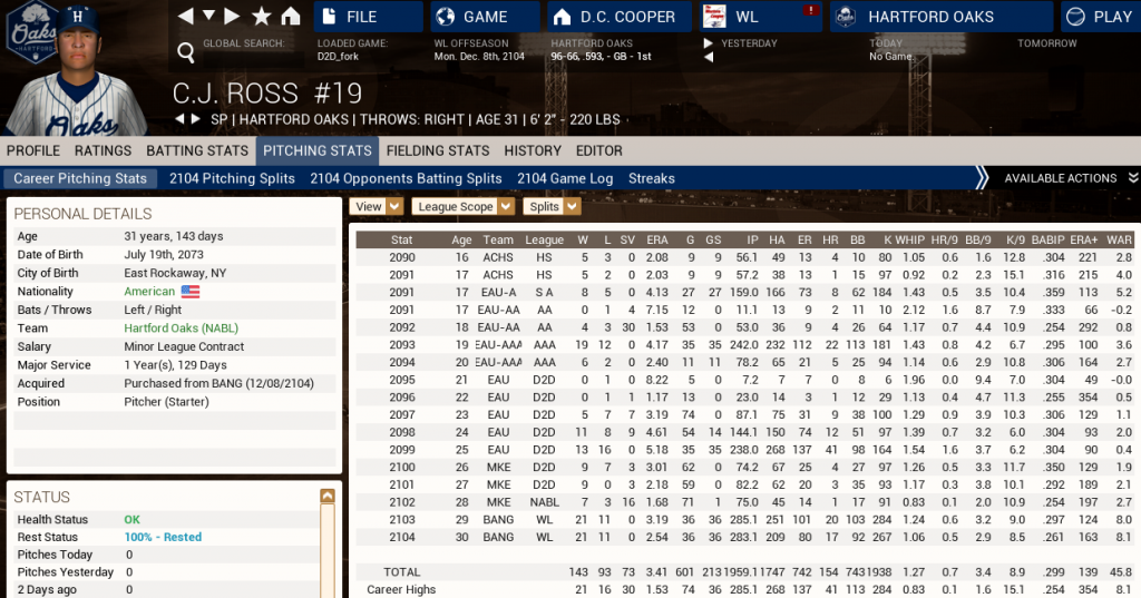 I have a save that's currently in its 306th season of play. I started it back in OOTP8 and have been playing it ever since upgrading from year to year. Sometimes, I play a lot and other years -- especially the past few -- I play a lot less. For some reason OOTP15 mostly thanks to the work of txranger and knuckler helping me get a good look for this league, has gotten me reimmersed into my league like never before and so, I've been playing like crazy. In fact, I've probably played about 70 seasons of the 300 years in just the past calendar year, which says a lot. But for most of that time, save for bringing a new expansion team to life and sort of helping establish their lore, I haven't been a traditional GM of any team for any real length of time. I wanted to fix that and so, I decided to attempt that with one of the franchises in my league. Right now, the majors have ballooned and we have three separate major leagues that exist. The D2D is the premier major league with no salary cap and huge payrolls. The UPB is the offshoot of the D2D with one league of D2D exiles and expansion teams and another league of Japanese teams that upgraded to major league status. Lastly, the new kid on the block is the NABL, which is comprised of the Canadian League and a bunch of D2D exports by and large. I'm going to take over the Milwaukee White Sox. The team was founded in 2010 as the El Paso Incredibles and moved to Milwaukee to become the Creamers in 2012. They moved to California in '33 first to San Jose Haymakers (a reboot of an earlier franchise of the same name) and then to Bakersfield in '48 as the Sun Sox. In '64, they moved back to Milwaukee and became the White Sox. In 2100, the NABL was formed and Milwaukee -- after making it to the Daylight Series (the championship of the D2D) -- decided to jettison the league they were a member of for almost 100 years, mostly because ownership was concerned about the rampant increase in payroll and with 36 teams, found it difficult for teams to have sustained chances at actually winning a championship -- rather than just "making the playoffs" despite years of trying. We just finished the 4th season of the NABL and Milwaukee is coming off their first US League (USL) pennant but they lost the Montrose Cup Final (that's the NABL championship) to Quebec in seven games. Ownership is heavily favoring a move next season, but has not solidified where the team will go. A move back to California is pretty likely. A move to Chicago possible, but unlikely. Colorado is also a potential destination. In any case, my job here is: 1) keep payroll at a defined amount under the cap. 2) build a sustainable championship roster 3) win championships I'm going to give myself ten seasons. I play fast-sim style, so that's without injuries mostly for simplicity purposes. I've always played that league this way, so changing it now would mean the future guys wouldn't get the chance to accumulate stats like their predecessors. It'd also mean I'd have to pay closer attention to the day-to-day sims and I have no interest in that. So my formula here will be to manage the off-seasons and then sim and do check-ins with the team at the mid-season mark, at the trade deadline and then at the end of the year unless there are playoffs. I won't even do any tinkering with lineups or such, that's the managers job. My job is to play GM and then see how it goes after that. I will probably implement other house rules as time goes on. Also, I am playing stats only. This is a new thing for me, but had been considering it for ages and finally decided to do it and I like it a lot for the way it impacts how players produce. So that's the storyline here. First things first, let's see where we'll be playing next year. |