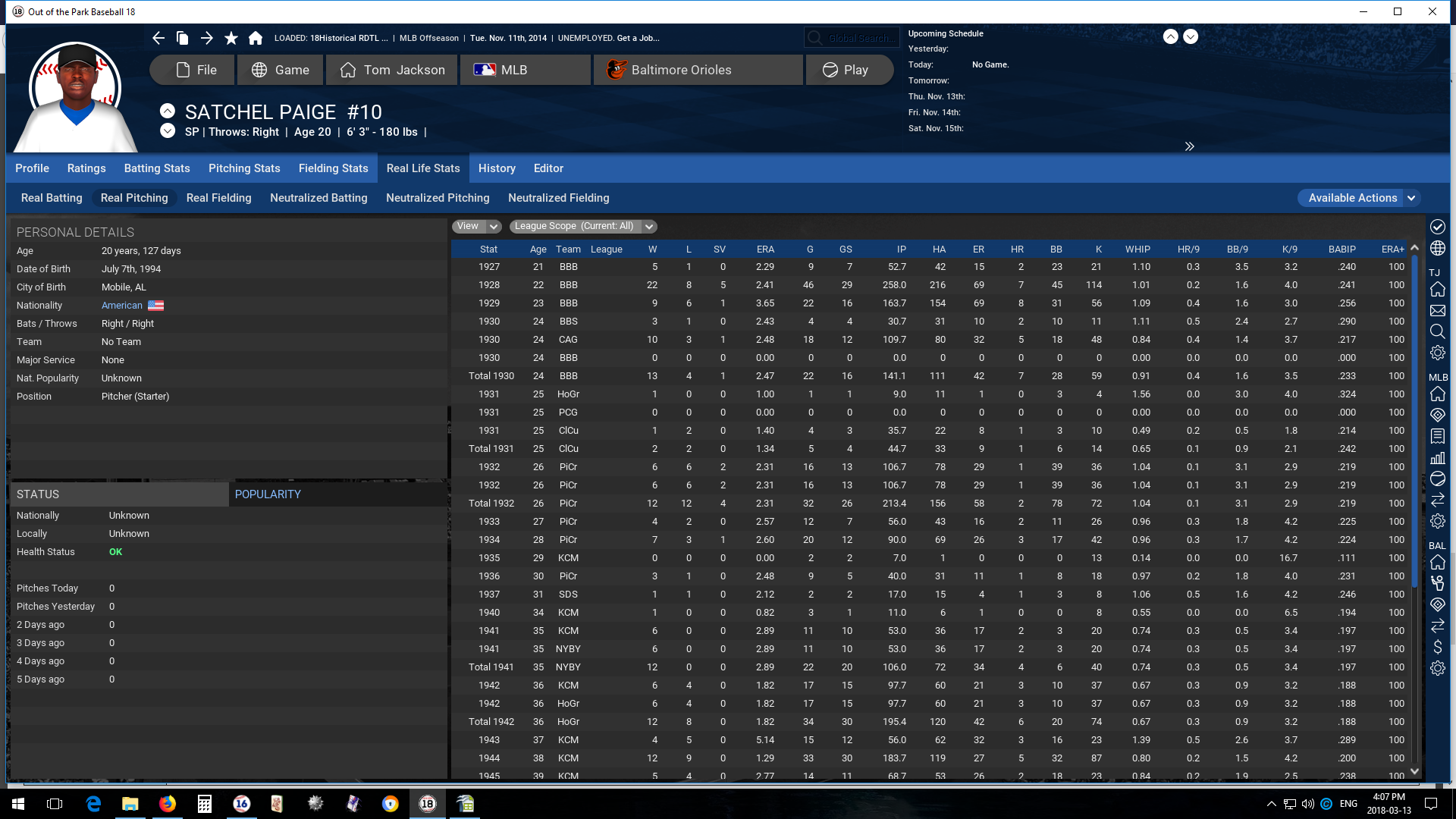 This is true. I am thinking of making the switch from Neutralized Stats (which I've always played with) to Real Stats with 5-year recalc double weighted for the current year, as I can see the end is nigh for Neutered Stats. I think Spritze is stepping back from OOTP things once OOTP19 is in the can, and I can't see them getting much attention after that. The writing is on the wall I'm afraid.