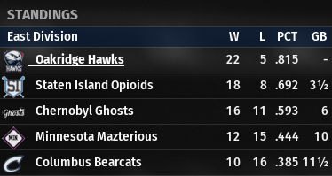 Either the "Gods of Chaos" have been let loose, or maybe the "Faceless Men of Bravos" are at work here, but the Oakridge Hawks, after a two season run of 233 wins and 91 losses, got crushed in the Division Series (1-3), this time by the Stinson Beach Seagulls - yet another wildcard team. It appears the Hawks will remain in the Bronze Level for 2030. Yeah, I'm in a funk. That's twice we should have moved up to Silver, and twice we failed. Both times the guys forgot they commanded the division all season. Sigh. Well, all I can do is try again, so we'll see if I can somehow make the team stronger for Year III Bronze, and hope the crowds and fanfare of playoff games doesn't get to them a 3rd time.