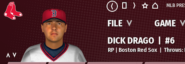 This one's a personal preference as I think he was clean-shaven when he first came up with the Royals but my Dick Drago always had a mustache. In fact, Dick Drago still has a mustache. So I had done one awhile back to reflect that.