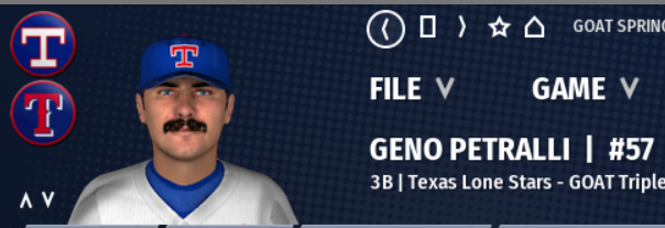 Seems the current CU pack has neither Geno Petralli nor his mustache. Here's both...