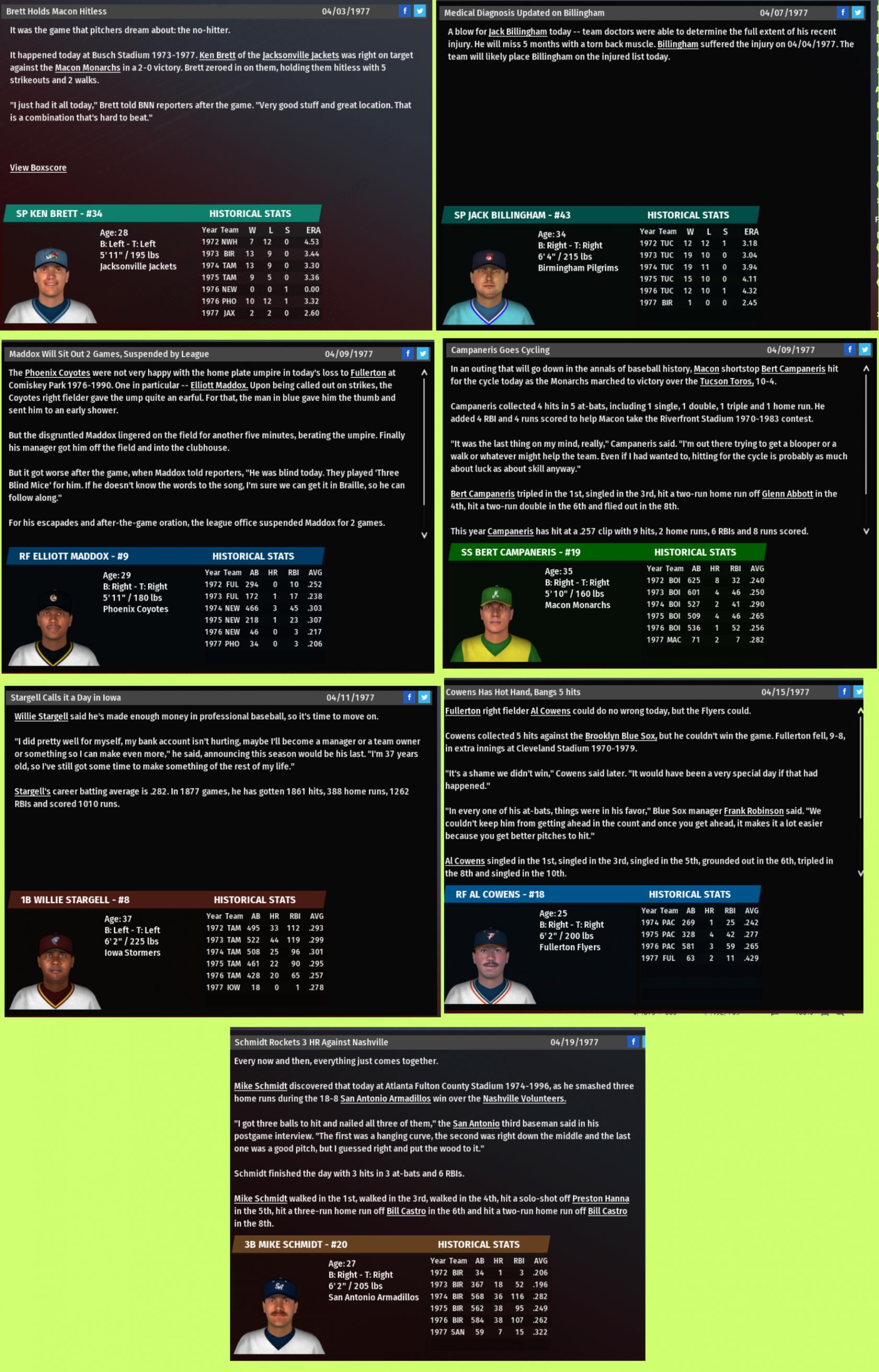 Historic Qualities; -Real Players (Facegen Applied) -Start in 1977 (1977 wiki review: https://en.wikipedia.org/wiki/1977_M...aseball_season) Non-Historic Qualities; -Fantasy Draft -Custom Team Names & Some Defunct Indy Teams & Few Created Teams Here you can see the unies and teams in the standings