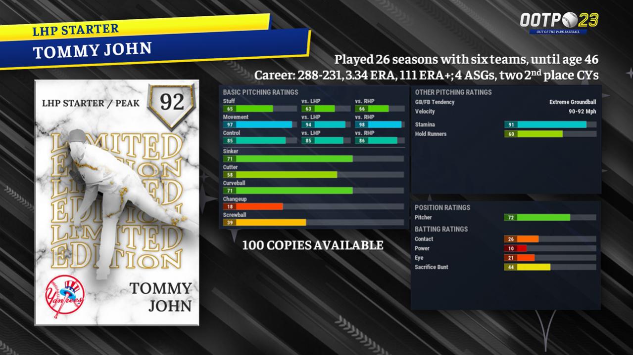 We released three new LEs last night - Bernie Williams, Randy Wolf, and Tommy John!