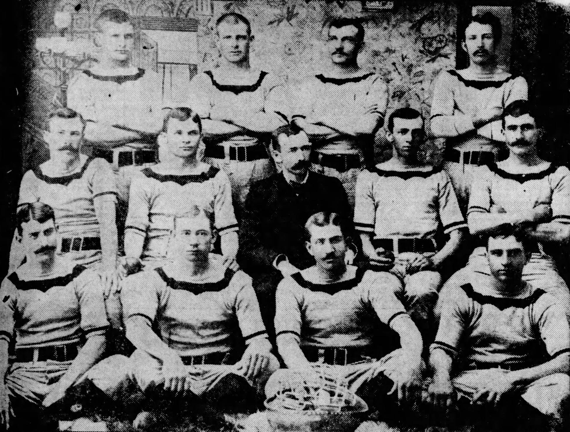 The IDs are as follows: Top Row, L-R: Jumbo Davis, E.C. Howard, Jon Morrison, Bill McGunnigle Middle Row, L-R: Jerry Turbidy, Henry Porter, Bill Watkins, Dave Foutz, Jim Cudworth Bottom Row, L-R: Joe Crotty, George Bignell, Charlie Robinson, Joe Strauss |