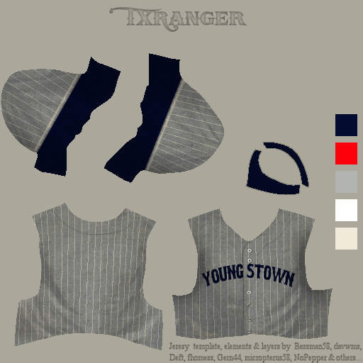 For those graphically inclined (specifically txranger), I have some logos that knuckler designed for me years ago and I'm looking to upgrade to having some good looking jerseys to go along with them. It's 16 teams, which is a lot I know, but I'm in no rush and if you (or others intersted) could design some jerseys/caps for my teams, I would greatly appreciate it. Thanks in advance. Here are a few teams now...