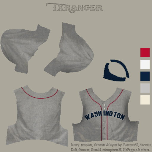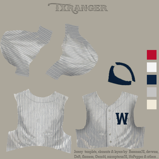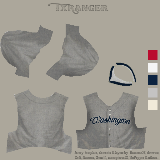 Thanks to knuckler, too, for the original logos that txranger altered with new team locations. And, to everyone who's looking at the thread: I requested these logos, uniforms, and caps late last night. txranger completed them in well under 24 hours. As a buddy of mine likes to say, "That dog'll hunt."