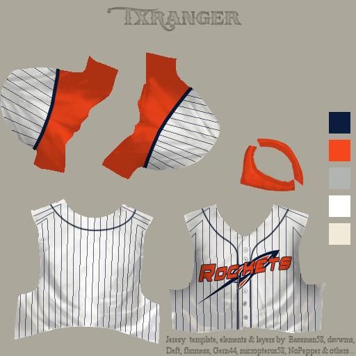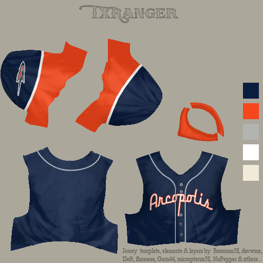 Another request, TXRanger, on a great uniform and logo you put together for me last year. The Arcopolis Rockets are moving into the 1980's, so I'm hoping for an updated look to reflect the times. I've always pictured the logo itself as a bold "A" over a rocket ship, sort of like the current Astros "A" over the Texas star. Anyways, if you have time to give the team a modern look, I'd love it! Below are pics of the retro logo and uniform, plus the current Astros logo. Thanks Tex!