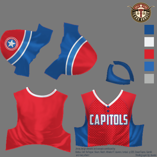 Txranger, I found the two logos below in your archive but I couldn't find uniforms. Were any made? If not, could you please make a cap, home jersey, and away jersey for them in your mid-century style? It would be much appreciated.