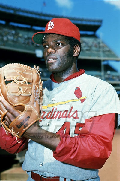 Bob Gibson (1969 Topps Vault) / Joe Torre (1969 Topps Vault) / Jim Grant (1969 Topps Vault) / Vada Pinson (1969 Photo) / Dave Giusti (1969 Photo) Note: Since I do not see the MLB 100th anniversary patch on Gibson's sleeve, it is possible that the image is not 1969. |