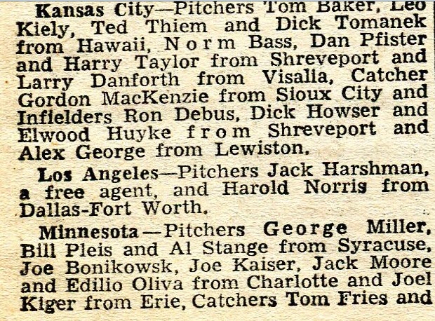 New York Yankees -- Pedro Gonzalez, Jack Reed, Jim Bouton, Jack Cullen, Norman Forsythe, Raymond Geiser, Howard Kitt, Lou Konyha, Charles Payne, Bernard Leonard, Dick Berardino, Don Lock, Charles Boone