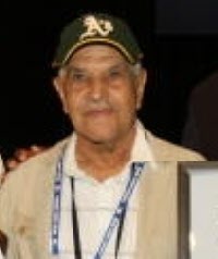 Irwin Castille, SS/3B, played for the Birmingham Black Barons during the 1951-53 period. He is shown here as an older man wearing an Oakland A's cap.
