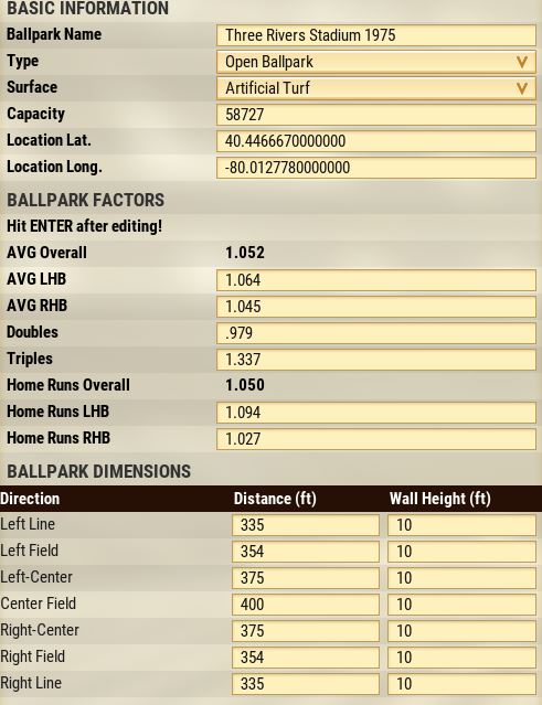 Changes on 1/1/19 - Re-did Outfield Stands - Fixed other crowd textures - updated field textures - Added new camera angle - Added new 2D diagram view