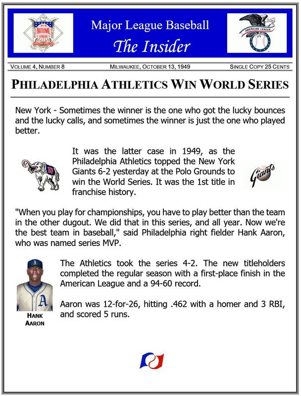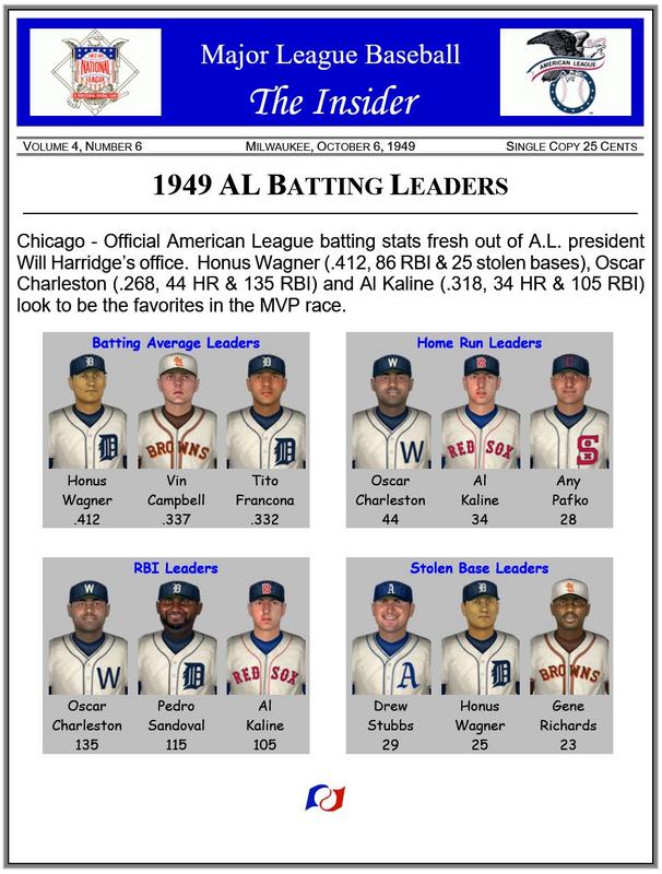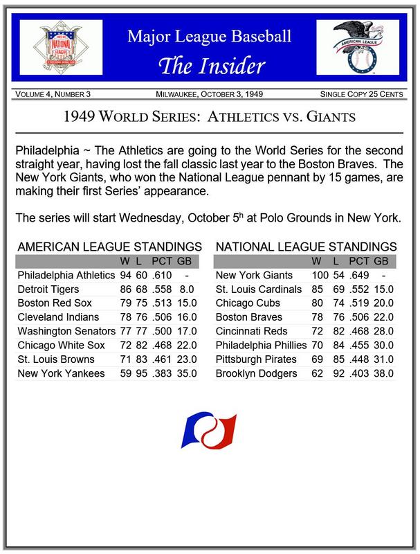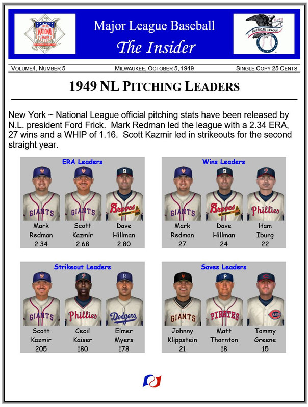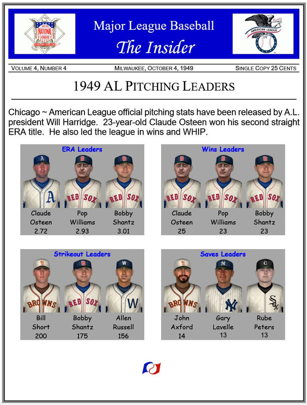 ![]() Real Life Comparison The 1949 World Series featured the New York Yankees (97-57) and the Brooklyn Dodgers (97-57), both with identical records. On Deck ~ AL pitching leaders |