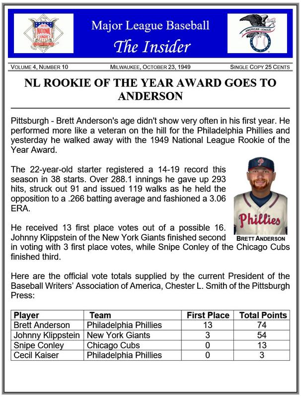 ![]() Real Life Age & Stat Comparisons Brett Anderson's rookie season was with the 2009 Oakland A's. He finished 6th in the ROY voting. On Deck ~ American League MVP |
