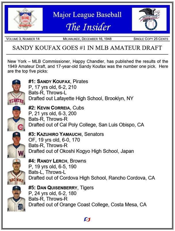 ![]() Real Life Comparisons Kevin Correia, at age 21, was drafted in the 4th round (127th overall pick) by the 2002 San Francisco Giants. Randy Lerch, at age 18, was drafted in the 8th round (170th overall pick) by the 1973 Philadelphia Phillies. On Deck ~ 1949 All-Star break |