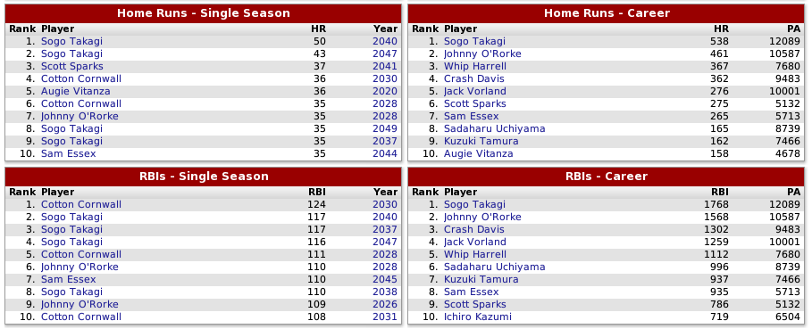I’ve never really posted on these forums before but I managed to stumble across this dynasty by accident and actually took a great liking to it. I’m not a gigantic baseball nerd but I do like it, and I greatly admire the work that’s been done on the IPA. It’s definitely not easy covering 64 teams but I think that’s what I like best. All the towns and there respective teams have so much life and personality. All the variety and history of this league make it a quite special one. I’ve always considered myself a Ginza Ninja fan in the TU and a Kilkenny Cat fan for the RU. Eventhough both teams suck i always liked them. I also have a question on your personal opinion of player talent in the IPA. Would you say the best players in the IPA are as good as the best players in the MLB or a step below? Anyways Just wanted to post that out of appreciation as another fan of your well done dynasty.