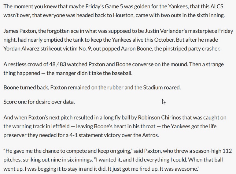 So the Yankees dodged the Verlander bullet last night. He was supposed to be the coup de grâce but it didn't happen. Now they must go back to Houston where they must sweep the final two games.