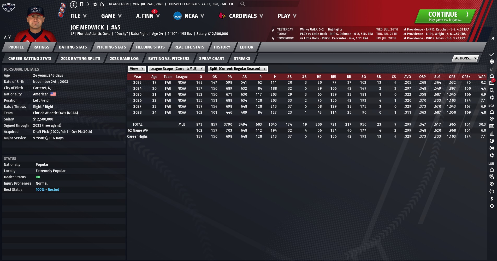Not sure why it doesn't mention it but he has now broken the NCAA record for a hit streak. The old record was 34 games.
