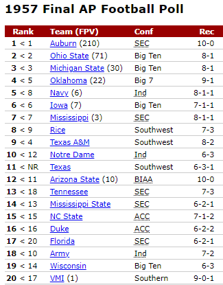 EC'S Lookin' for Heaven in '57 Boola Boola, Boola Boola. Never heard that cheer at a football game, did you? But maybe it got your attention. EC was an avid fan of the Alabama Crimson Tide in the miserable 50s... boy, was the Tide bad in those years... the Ole Miss Rebels under Johnny Vaught were a powerhouse... LSU was mediocre... and Tulane was terrible... the Greenies decided to de-emphasize sports and stress academics... hmm... that's a novel idea for a place of learning. Athletes should be "Students" first, right?... makes sense to me... a university is a place of higher education ... not a farm club for the NFL Yep, EC is an idealist and a purist. The Auburn Tigers were ranked #1 in the Associated Press Poll, but they were not allowed to play in the Sugar Bowl,... seems they had paid several football players $500 each. What?... they cheated even way back then?... yep, they did not play by the rules... shame, shame, shame. The more things change, the more they stay the same... colleges are still cheating worst than ever these days. EC used to have his peapickin' ears glued to the Alabama broadcasts every Saturday afternoon listening Maury Farrell and John Forney doing the coverage... yep, I mean to tell you EC suffered pitifully and painfully every Saturday... the Crimson Tide was awful. Ole Miss LSU Alabama Tulane 1957 SEC Standings Last edited by Eugene Church; 02-24-2022 at 12:29 PM. |