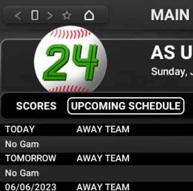 In the Upcoming Schedule tab (Perfect Team), instead of displaying "No Game", the field appears to either misspell Game or cut it off: