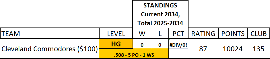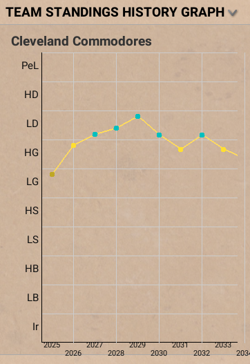 The $100 early investment, Twitch drops, and fast early rise to LD so far sustained the Commodores - now the question is can they survive the eventual "whale-wave" without further investment. My guess is "no". LOL It's interesting, however, that the other 5 teams I started all followed a similar path; some early success, but an eventual settlement into the middle levels with a 68-69 team rating. Without the $100 boost and the constant Twitch drops, they all followed the same "rush to the middle".